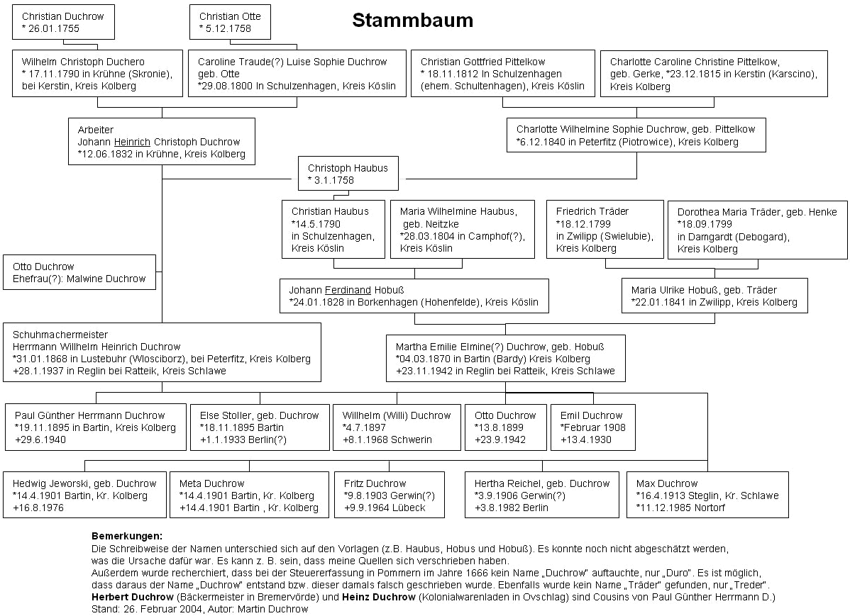 Hier ist der Duchrow-Stammbaum bis zur Stufe meines Großvaters: